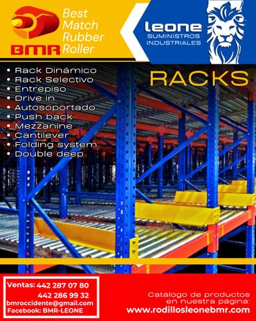 Optimice su espacio de trabajo con nuestras soluciones de almacenamiento en RODILLOS Y TRANSPORTADORES BMR-LEONE. Contamos con estanterías, rodillos transportadores, racks y sistemas de almacenamiento adaptados a sus necesidades específicas. Nuestros productos están diseñados para mejorar la eficiencia y organización en su entorno industrial, permitiendo un acceso rápido y fácil a sus herramientas y materiales. ( fabricación de rodillos transportadores metálicos y recubiertos,conveyors transportadores por gravedad y automatizados, esponja etiquetadora)
