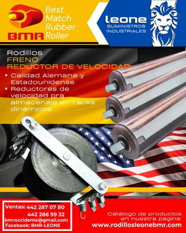 RODILLOS REDUCTORES DE VELOCIDAD. Calidad Alemana y Estadounidense, rodillos freno para regular las velocidades de las cargas en los almacenamientos en racks dinámicos.